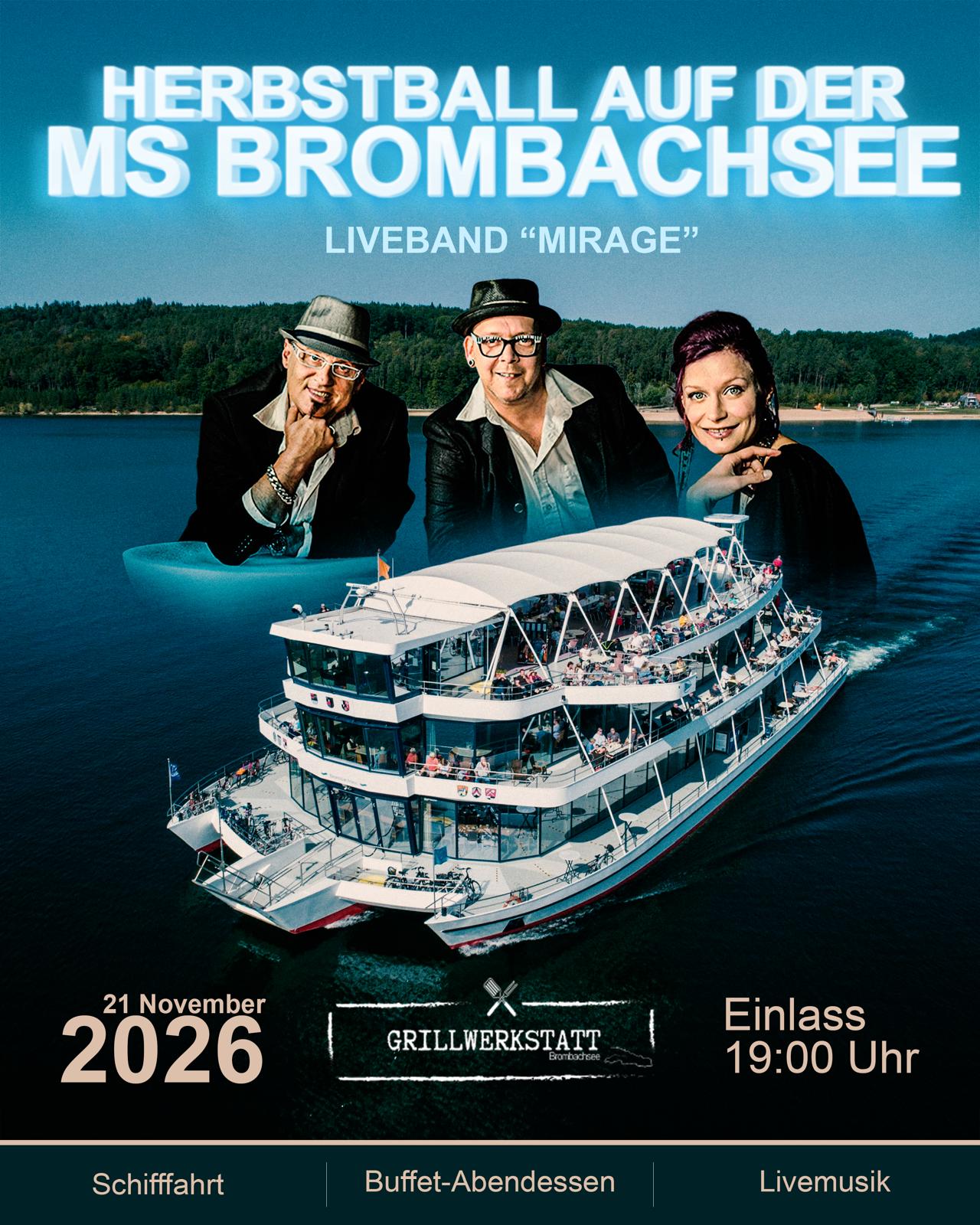 Wenn sich die Blätter färben und das Jahr seinem goldenen Finale entgegenneigt, lädt die MS Brombachsee zu einem festlichen Tanzabend auf dem Wasser ein.